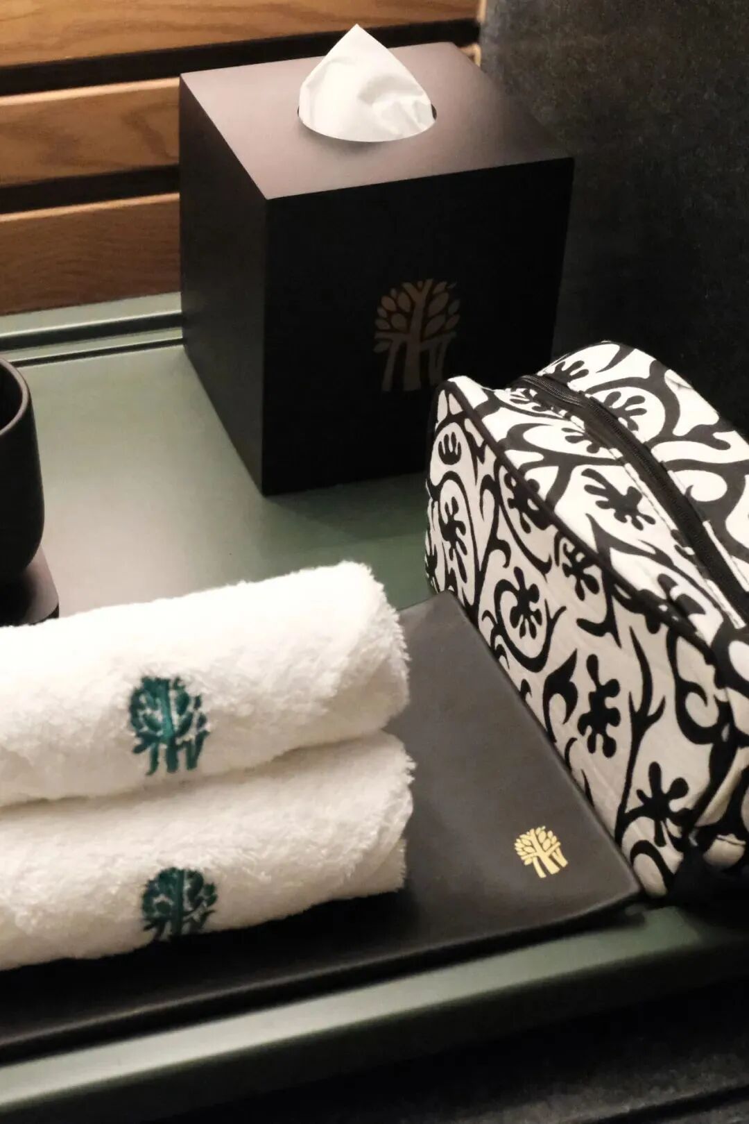 【梦谷崖景房】拥有60㎡的室内空间,半开放式的格局。同时,增加了更多艺术装饰。黑色与墨绿色大理石材质的使用,既有悦榕庄的特色,也勾勒出大气的风格。洗手间干湿分离。双洗手台一体化连接,强调了亲密感。浴缸旁木制拉门设计赋予了禅意,燃一支香,养修的氛围感拉满。酒店备品选用悦榕庄专属香氛系列,标配的梳妆台适合女性客人。房间内的风格元素十分统一,浴室的木制拉门与梳妆台的藤制板凳互为呼应,颇有东南亚风情。房间内浴袍、洗漱包是悦榕庄的经典款式,皆分男女。戴森的吹风机,挂烫式的熨斗,皆用绿色皮质盒子装起,充满质感。打开Bose音箱,开始泡澡!![]()