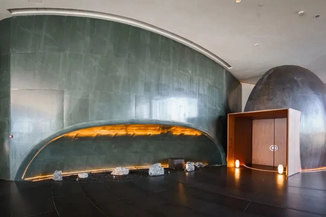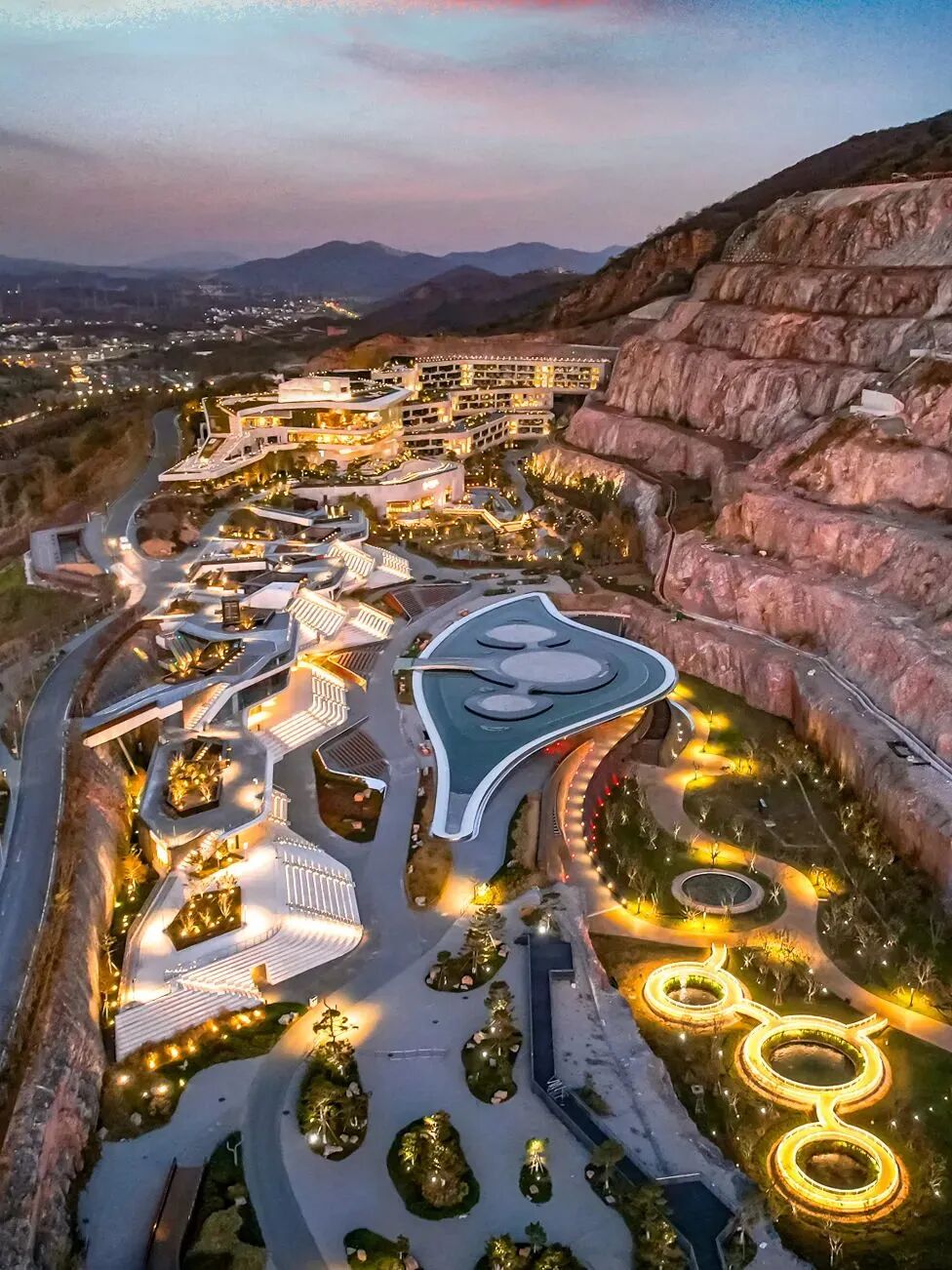 从第一家悦榕庄(普吉岛)诞生之初,品牌便剑走偏锋,在锡矿场打造了3500亩热带花园。而这一次南京园博园悦榕庄酒店打造矿谷奇观,不仅有异曲同工之妙,更是对品牌的致敬!酒店坐落在园博园四大花谷区域之一云池梦谷里,挑战建筑难题,以采石场废弃后形成的矿谷为依托,仅用时498天便建成了目前这座梦幻的建筑,再度诠释修复环境,回归自然。酒店整体建筑现代大气,四周蒸腾着温泉泡池散发的袅袅白烟,说是矿谷秘境,真的不为过!酒店室内部分则交由CCD设计,在先锋时尚的同时又融入南京特色。蛋形半开放式大堂名为“峰起”,在自然光线下颇为惊艳,待夜晚灯光亮起亦相当亮眼。整个装置由单片木板层叠拼接成茧的形态,与酒店设计思路不谋而合,寓意故地新生。充满设计感的同时,也赋予大堂空间别样的意义。「茧」的一旁还有一处旋转楼梯,连接楼上屋顶花园以及楼下餐厅,曼妙曲线充满艺术感。雨花石是南京的一大特产,因此酒店在大堂靠窗一侧打造了名为「石头记」的艺术装置,由真岩石点缀永生苔藓,既寓意汤山在这里重生,也为建筑带来层次感。大堂西南朝向为大堂酒廊,180度的落地窗视野无敌,尤其适合欣赏日落。窗外美景被引入室内,光影随自然而变,建筑也灵动起来。师法自然的悦榕庄,一直是度假爱好者的心头好。酒店拥有115间客房及套房,基础客房60平米起。在宽敞的同时,保证了每间房都能拥有观景阳台。来到南京,怎能不提汤山温泉,富含30多种矿物元素,对人体修复和疗愈超级棒!因此酒店将13公里的汤山温泉远程引进,并在标配的房外阳台设私家温泉泡池,打造真正的一房一私汤!酒店一步一景,观光电梯内的云锦装饰画古色古香,玻璃幕墙的廊道颇有工业气息。走道上的屋顶使用传统工艺,用木质材料以凹凸方式拼接,体现出中国古老的文化和智慧。![]()