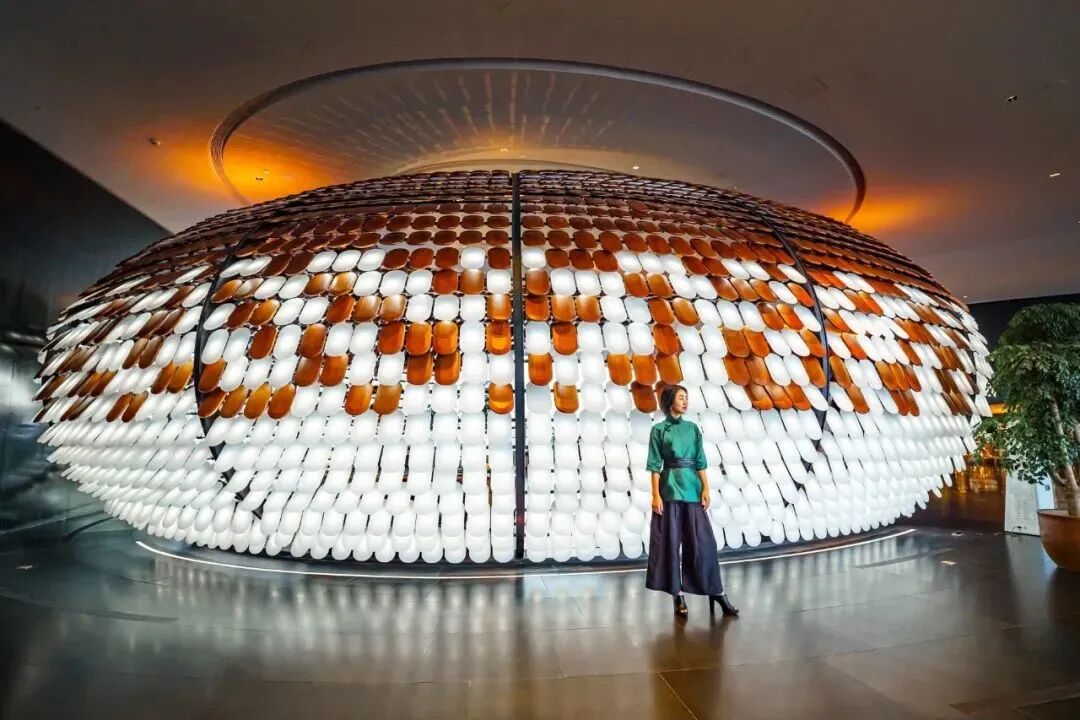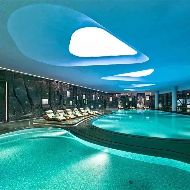 水疗分四个部分,结合了南京特色,由草药蒸气浴开始,待肌肤得到软化后,使用当地特有的雨花茶叶进行身体磨砂,随后配以舒缓的热石按摩,最后以芳香茶浴收尾,体验下来神清气爽!除了spa,酒店还有诸多项目可以体验,在前往多功能厅的途中,再度被酒店的设计感折服。空间被透明玻璃柱隔开充满流动感,立灯模仿金陵灯会式样充满民族风情。艺术吊灯也非常吸睛,创作灵感来源于金陵秦淮灯会,这项民俗活动有“秦淮灯影甲天下”的美称,而吊灯无论是自然光线下还是点亮后都流光溢彩,设计的如灯会一般。除了可以在房间内享受温泉,酒店有公共温泉池泡11个,分为室内室外2部分。每个池子都有温度显示。相比较室外泡池堪称壮阔的景观,室内的泡池则贴心放置了中草药包,具备相应的理疗功效。![]()