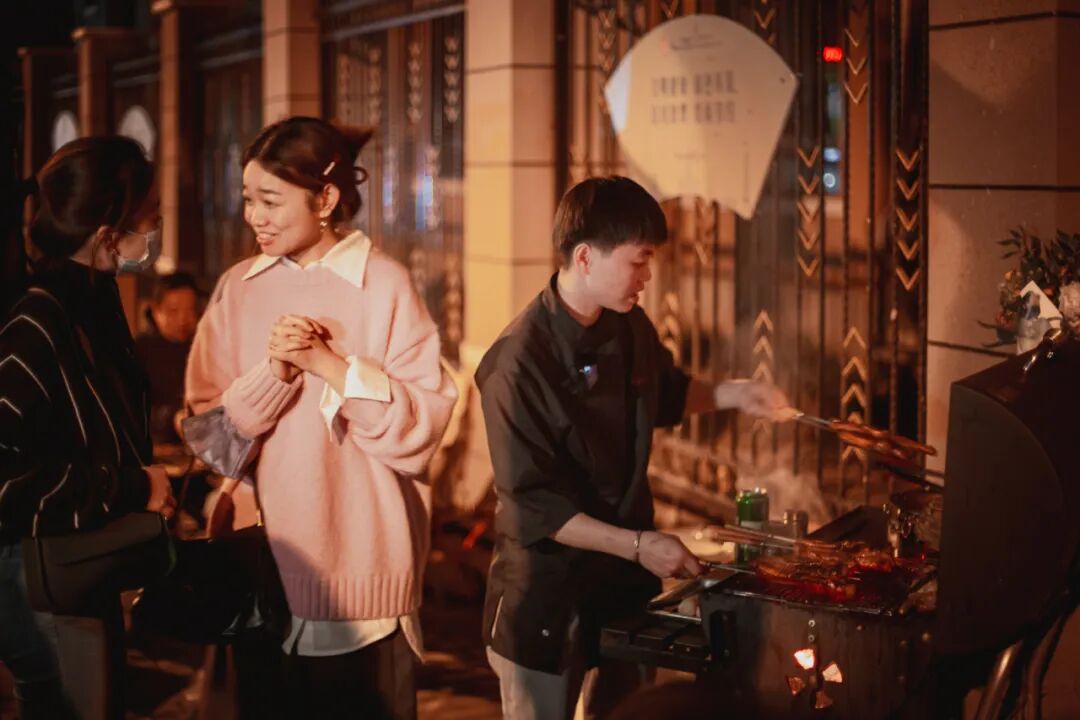 周末的夜晚,魔都梧桐区填满了热闹的气息。巨鹿路上的人们结束了饭局,有的行色匆匆钻入出租车,有的挽着朋友踏入了小酒馆。此时此刻,一个短发女孩,推着一辆移动式烤炉和一些折叠露营椅从夜色中走了出来。她熟练地打开座椅、搬来简易餐桌。有两位客人已经拿着啤酒一边聊天一边在等她。他们互相打了招呼,随后女孩来到烤炉旁生火,打开食材包。这个女孩是今天的故事主角,FiFi。93年出生的她,留一头利索的短发,看似有点学生气,履历却非常丰富。最早是PizzaMarzano的披萨师,后来在AZUL、贰千金工作多年后,入职外滩米其林餐厅Joel Robuchon,担任3年单人助理厨师,随后去到Thinking Food & Drinks担任主厨。今年春天上海经历疫情时,餐厅歇业关门,FiFi“被迫”开始经营起自己的烧烤摊来。见到FiFi的这天,天气有点冷了,但这丝毫没有影响客人们的热情。从最开始的两个客人,到后面越来越多,小小烧烤摊边围了大概有20来个人。大家随意落座,认识的、不认识的挤在一起,仿佛在等待一场神秘节目的开场。FiFi已经在一旁马不停蹄地烤起了牛羊肉串,搭配特制的独家酱汁,香气四溢。有一位在附近遛狗的路人,狗狗闻到香味直接把手里攥着绳子的主人拉过来了。结果一见面,才发现是老客人。“太不好意思了,今天都全部订满了,只能下次。或者看等一下有没有多余的食材我再给你烤!”满头大汗的FiFi对着这个大哥说。还有一圈10来个人的阵容从远处走过来,“FiFi,我们来啦!”10人小分队的“队长”说,第一次是自己和男朋友过来,被特别的味道和坐在室外的氛围感吸引。后来,他们就开始组织把周末朋友小聚地点转移到了这里,已经是名副其实的常客啦!这样的火热场景,从今年7月1日第一次出摊开始,已经持续了将近4个月。7月1日,FiFi在推出餐车之前和朋友说,“今天准备了50串肉,一共鸡、牛、羊三种,如果卖不掉,我半夜1点钟就收摊。”结果11点出摊,11点20分左右生完火,12点左右就全部卖完了,完全出乎了她的预料。客人们的反馈都很好,这也给了FiFi许多信心。她开始实行预约制,让客人们加她的私人微信(为了减少聚集可能,她没有建群组)。每周只有周五至周日营业,营业日当天会开放预订,并把当天准备的食材罗列好清单和价格发给顾客,顾客按需预约。4个月的营业时间里,最多的一天来了近30个人,卖的最火的餐品,第一名是老卤肥肠,第二名是广西老友酱蛏子。现在,FiFi手机里已经有将近有300位顾客,其中还有不少慕名而来的邻居。他们常常问,FiFi,今天生意怎么样?有什么需要帮忙的?还有多余的食材吗,我也想来一串!将近午夜,FiFi的深夜烧烤摊,成了巨鹿路上的温暖驿站,烤炉的炭火散发着微微暖意,与这条马路上真实的风景一起,似乎开辟了一块悠闲轻松的场地,让你尽情享受这周末的夜色与快乐。“Joel Robuchon教会了我做料理要严谨”看似朴素的路边烧烤,却动用了FiFi的无数心血。一来是因为,这个烧烤摊是她这四个月以来的全部工作,不是靠它玩,而是要靠它营生。二来是因为,FiFi觉得做餐是一件需要严谨态度的事。“FiFi”这个名字,就来源于她在Joel Robuchon的工作经历,主厨习惯只喊大家名字的前面那个音节,原来的英文名“Fighting”就变成了这个充满韧劲又有点可爱的名字。这段经历,不仅为FiFi带来了这个独特的名字,也更新了她对厨师、对餐饮行业的认知,让她在从厨之路上走得更加踏实。“JR对我来说,是一个非常专业的类似学校的地方。在这里我们要亲手去学习掌握怎么择菜,怎么杀鸡,怎么开鱼,最后到to service的每个环节。在其他餐厅或许你可以随意一些,但是在JR必须严谨。如果被问到某件事情‘做好了没有’,不可以回答‘差不多了’,而是要说‘做好了’。我觉得厨师就要态度严谨,也需要有缜密的逻辑。”FiFi是严谨又缜密的,可能因为她是金牛座,也可能是因为上大学时她的专业是理工科。所以这次虽然做的是路边摊,但FiFi也把它当成了法餐料理来对待,给客人们带来了“做好了”的Fine Dining路边烧烤体验。在食材上,FiFi就动足了脑筋。比如买鱼,要买台州当地最新鲜的鱼,这也是FiFi直接问港口渔船拿的货。还有台州的大虾,FiFi预定了1个多月才终于订到。连这些辣椒蒜头花椒的小配料,FiFi也精挑细选,细节处都是讲究!“这个紫皮独头蒜,就很好吃。”FiFi说,相比其他的蒜头,这种独头蒜甜度脆度都更综合,辣度也相对柔和,对上海本地人口味很友好~烤茄子也收获了超高人气。用到的蒜蓉辣酱,是用碳烤过的茄子切成丁,再加入蒜蓉,和自己泼的红油制成的,酱汁用烧烤酱油去调。除了蒜蓉,FiFi还加入了云南的糟辣椒。“重庆人也是这么吃,只是我改良了一下,泡椒换成糟辣椒。”最馋人的是酱料。“这不是什么秘方,也完全可以公开。只是这个方子很耗时间。”FiFi说她的烧烤酱配方不难,就是红酒、酱油、酱料、水果。难的是步骤,因为要花时间把红酒的酒精收起来,烧到没有酒味,随后加入酱油酱料焖整整一个晚上。随后再加水果、红糖、蜂蜜、水果果茸。每一次用到的水果都是当季新鲜的,比如7月用黄桃,水蜜桃,葡萄,到了秋天,蜜瓜,柑橘,柚子,石榴成了主角,有时候还会加一点无花果。“少一个步骤都不行。”上海还有那个路边摊摊主有这样的执拗劲?如果当天是摆摊日,FiFi的日程就会安排的紧凑而准确。下午3点,她把秋冬新上的宁夏羊肉高汤炖了起来