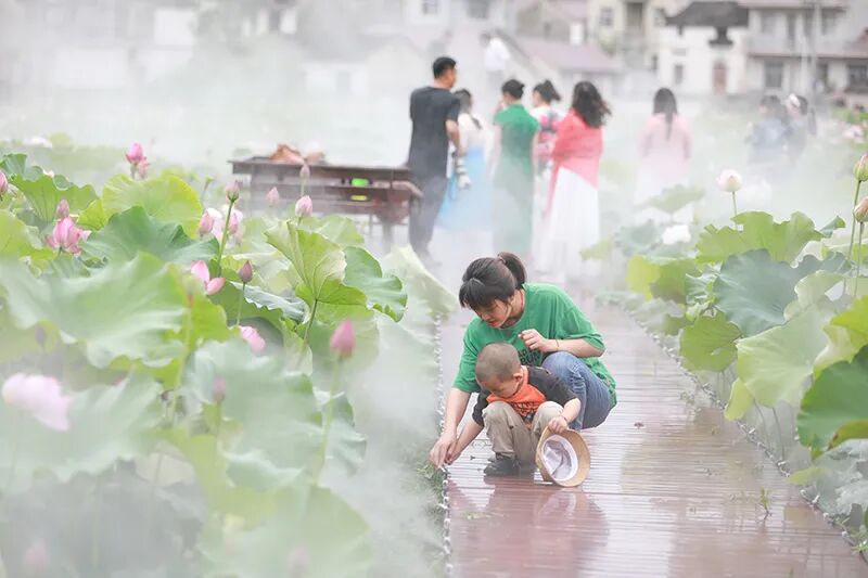 旌德县俞村镇鲍家小院的百亩荷花竞相开放