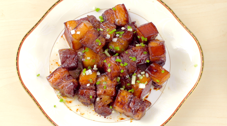 ▶ 红烧肉堪称国民特色菜,而我这道花雕红烧肉更是不放一滴水,用陈年花雕烹制。❶ 选上好的五花肉,切中大块,然后加姜片汆水。❷ 沥干后稍微煸炒下,加入大量花雕和生抽。我习惯将三四种不同牌子的生抽混合,这样肉的口感层次会十分丰富。❸ 大火煮沸后转小火烧制一小时左右。中间需要不时地去翻动,查看锅内情况,我用的是铸铁锅,这样烧出的肉会比较酥软。 | |