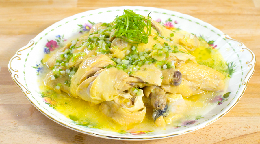 ▶ 葱油鸡这道菜其实很适合懒人,当你想吃鲜香嫩滑的鸡肉,却又苦于烹饪技巧不佳时,这道菜足以解馋。❶ 首先要挑选嫩母鸡一只,去除内脏洗净控干。❷ 煮一锅水,放入葱结和姜片,等水沸腾后放入鸡,水以没过鸡为佳。❸ 等水再次沸腾煮3-5分钟后关火,不要打开锅盖,让鸡在锅中焖15分钟。❹ 鸡取出后放入冰水中冷却半小时,再取出切块摆盘。❺ 制作葱油,切大量葱花放入热油里加盐和煮鸡的鸡汤,煮至沸腾后关火,将葱油淋到鸡肉上即可。 | |