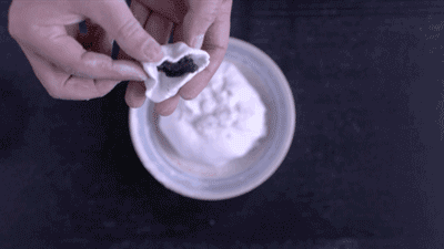 装进馅料,轻轻挤压,把接口合拢,搓成圆团
