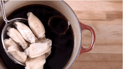 ▶ 瑞士鸡翅(Swiss wing)其实是由甜鸡翅(sweet wing)误传而得名,跟瑞士一点关系都没有。实际上,瑞士汁就是一种甜卤水,由黄冰糖、八角、花椒、料酒等调制而成,一定要趁热吃,否则会错失最佳风味。❶ 首先将鸡翅洗净,放入烧开的葱姜水里汆烫,等水再次沸腾后捞出,放入冰水浸泡。❷ 调制卤汁,将少许老抽、生抽、料酒、水,适量陈皮(越陈越香)、香叶、黄冰糖以及装有八角和花椒的香料包,一起放入锅内。❸ 开大火,等冰糖完全融化时调至小火,可根据自己的口味,决定是否取出香料包,以免卤味太重影响口感。❹ 放入鸡翅,汁水沸腾后小火焖10分钟,再把鸡翅翻面煮10分钟。❺ 关火,焖15到20分钟,即可出锅装盘。 | |
