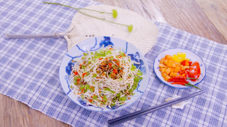 随食掌柜 | ► 春夏交替之际,天气渐渐湿热,是不是吃什么都没有胃口?蓝晋的开胃妙招就是来一碗鸡丝凉面,陈醋的酸、花椒的麻、红油的辣和鸡丝的香,层层绽放在舌尖。 鸡丝凉面用料丰富,做法分为三个部分:配浇头、打碗底和晾面。 |