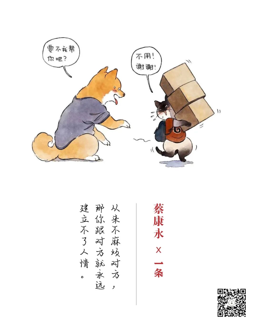 A:我很讨厌崇高的字眼,那些都是加在我们身上的枷锁,在逼我们去追求一个很难达成的东西。有一次我在跟马东辩论的时候,他就说:“15年过去了,我们原谅了对不起我们的混蛋情人。”我说:“15年过去了,你不是原谅他,你只是算了,你不用把每件事都讲得那么高级。”动不动就讲原谅,讲和谐、讲包容,我觉得太要求别人,也太要求自己了。我宁愿把这些被无限推崇,又做不到的,形成了我们的压力的事,变成一个比较做得到的事,大家都会放心很多。A:我们大部分人其实没力气交朋友,可是等到寂寞时候,又很渴望有朋友陪伴。我觉得这个矛盾,连我自己都在里面。我觉得我们交朋友的时候,完全可以有功利的目的在里面。“纯粹精神层面”这几个字是被过度美化的字眼。我相信大家跟我一样,越生活越知道,没有这档子事。