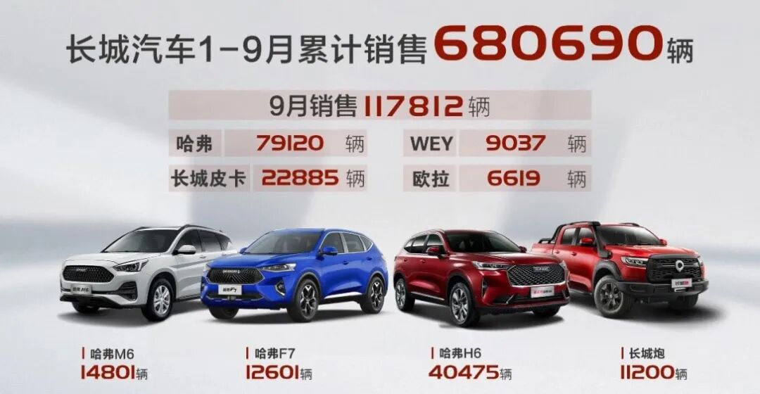 10月9日,长城汽车发布2020年9月销量数据。来源:长城汽车官微。