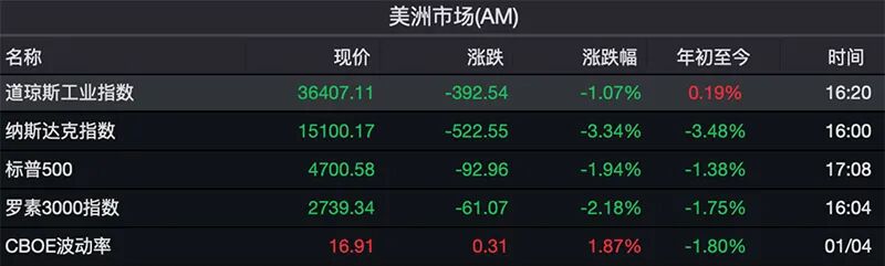 在美联储公布货币政策会议纪要后,美股加速下跌。当日,道指收跌392.54点,跌幅1.07%,创2021年12月20日以来最大跌幅。标普500指数收跌1.94%,险守4700点,创2021年11月26日以来最大跌幅。纳指收跌3.34%,创2021年2月25日以来最大跌幅。