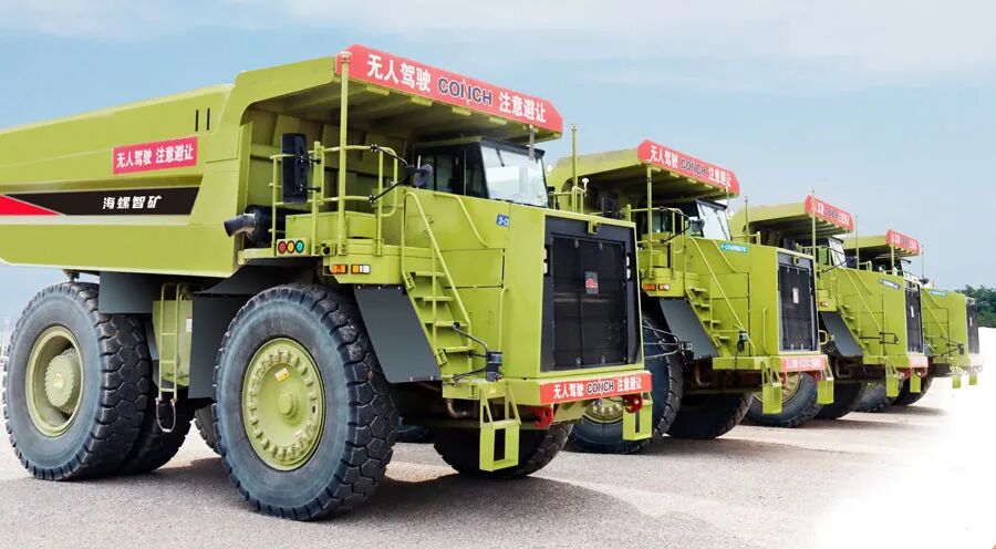 参观车辆驶入芜湖海螺水泥生产基地,停在了一栋建筑前。而最先映入眼帘的是“巨无霸”无人驾驶矿车。