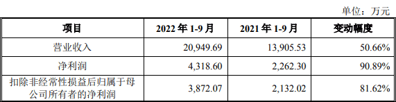 耐科装备招股书称,预计2022年前三季度实现净利润4318.60万元,同比增长90.89%。