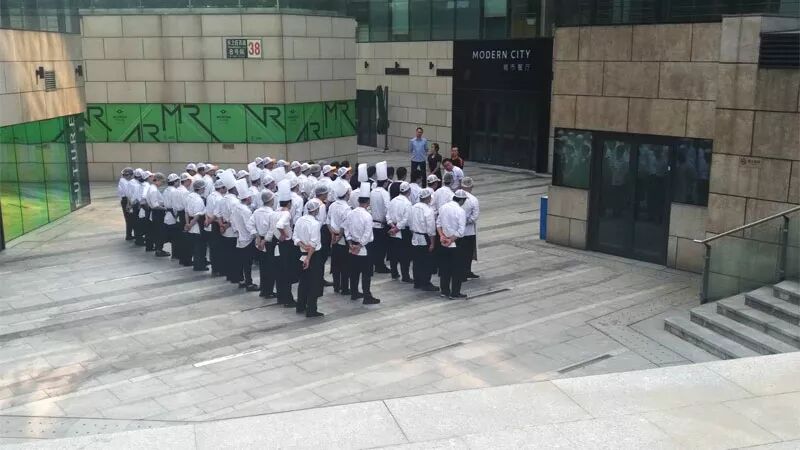 被训话的餐厅外包工作人员。