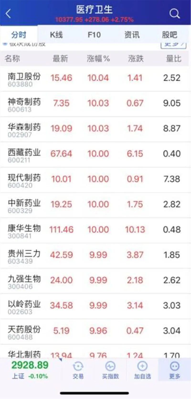 今日早盘医药生物股继续高歌猛进,疫苗板块更是炙手可热,西藏药业和康华生物等个股涨停。