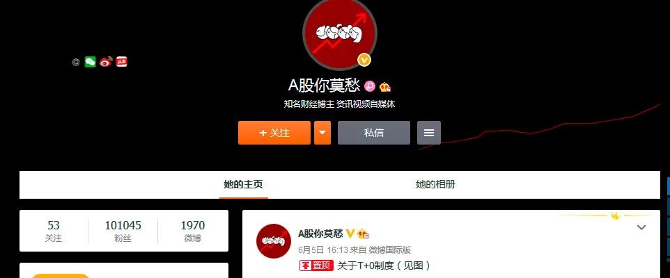 截至6月末,A股你莫愁微博关注人数超过10万,总计发出的微博数近2000篇,其制作的财经短视频和添财酱的风格有一定相似度。