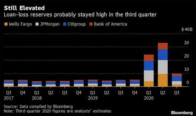 10月13日、14日,摩根大通、花旗、高盛集团、富国银行、美国银行相继公布其第三季度业绩报告。