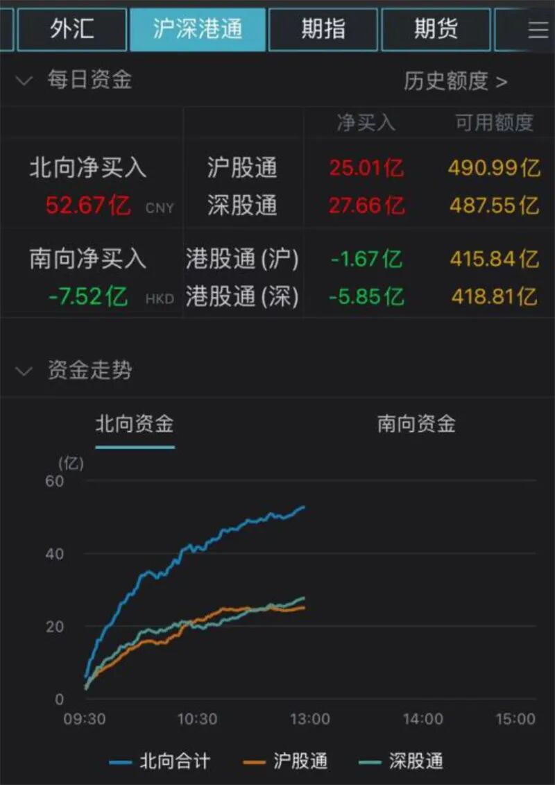 北向资金早盘恢复买入