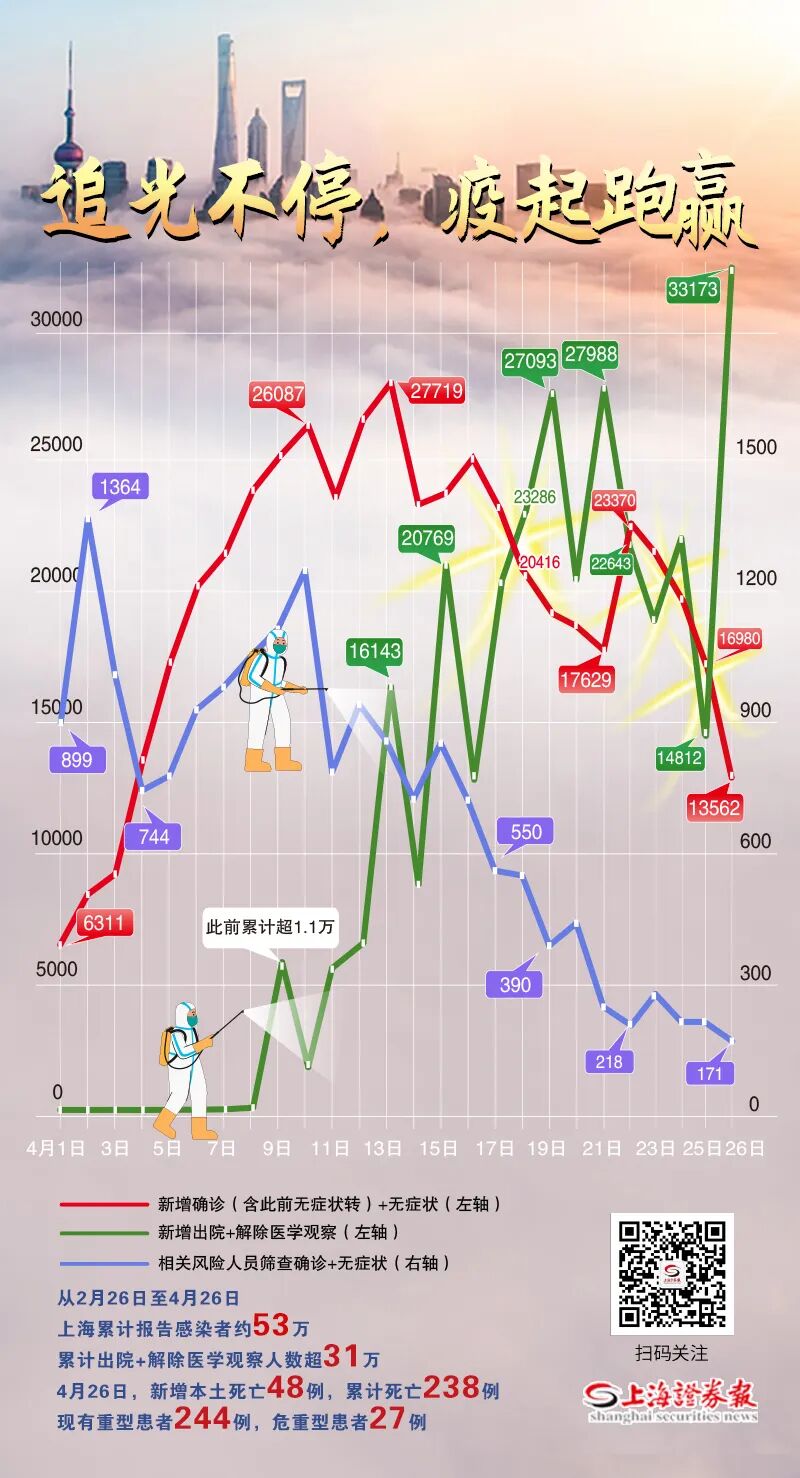 上海市卫生健康委最新披露,4月26日,上海出院出舱人数33173例。