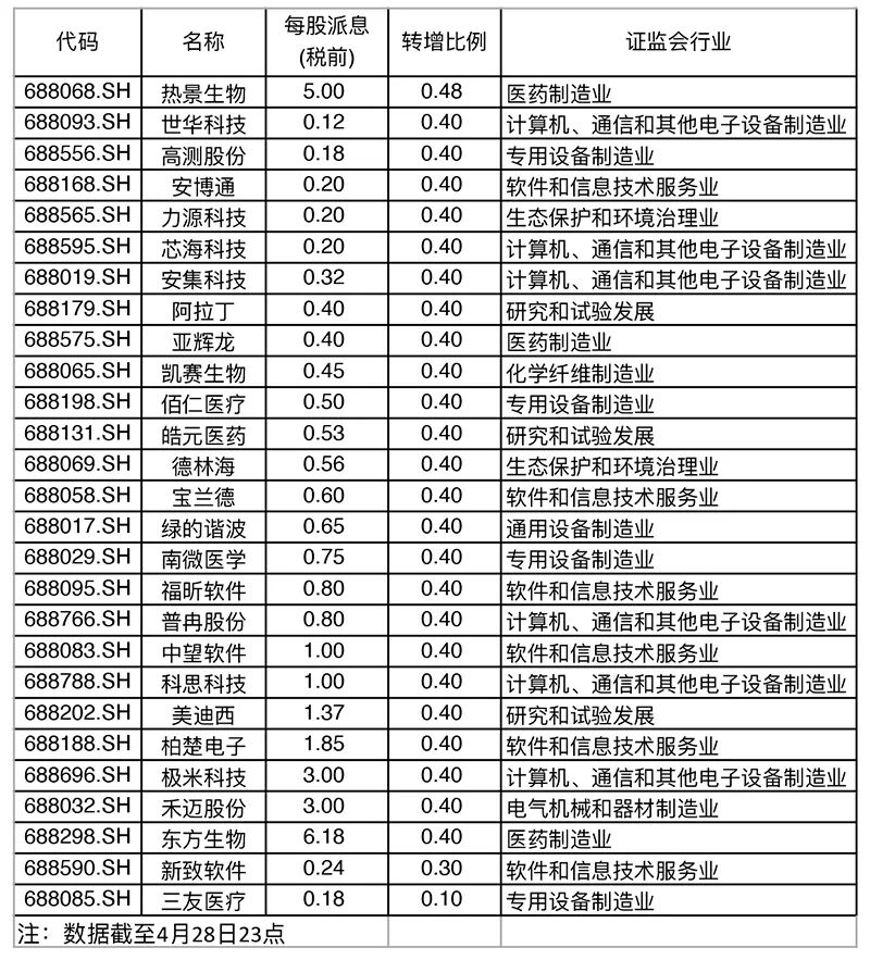 截至4月28日晚间,已有多家科创板公司在实施现金分红的同时,还推出了送转股方案。