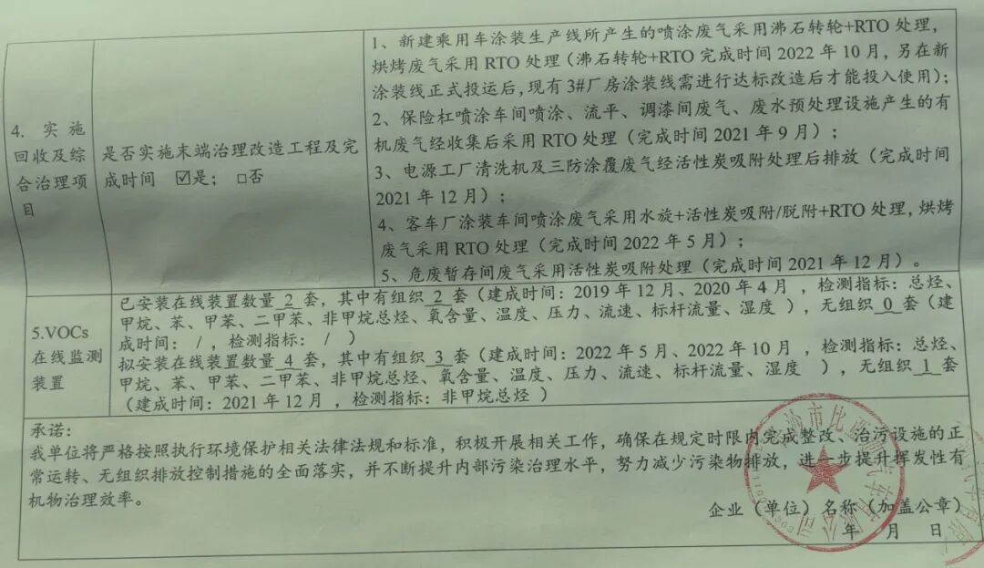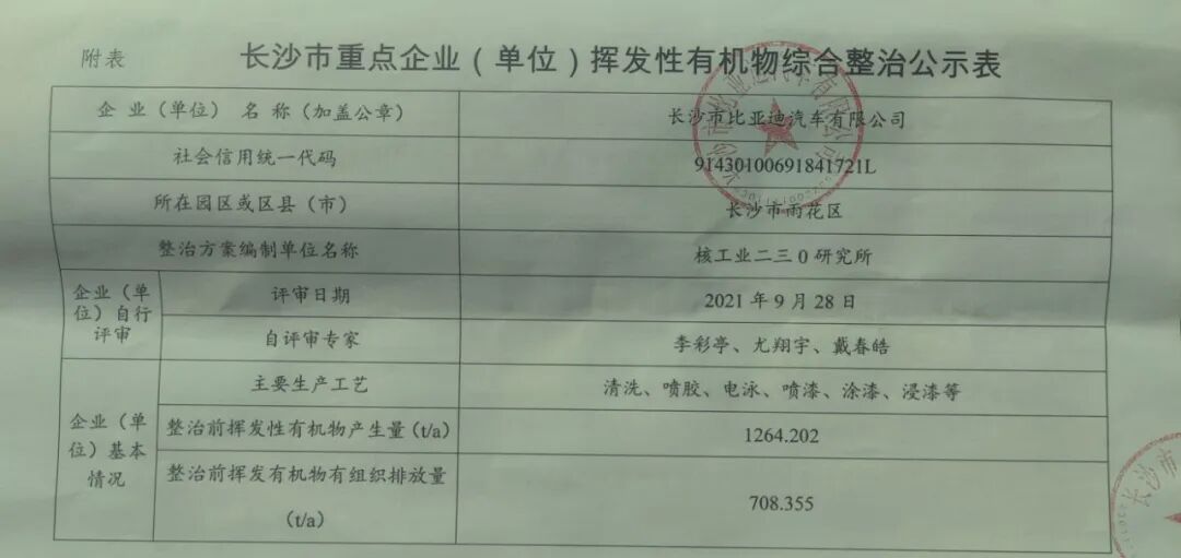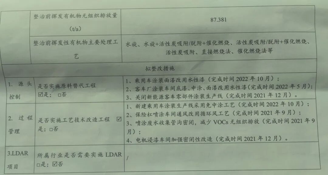 对此,长沙比亚迪需要拟实施整改措施。公司在源头控制方面,乘用车涂装面漆改用水性漆,完成时间2022年10月;客车厂涂装车间底漆、中涂、面漆改用水性漆,完成时间2022年5月;关闭新能源客车零部件涂装生产线,完成时间2021年12月。