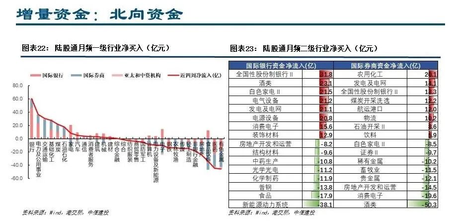 从月度数据来看,中信建投证券统计显示,截至5月27日,托管在国际银行机构的北向资金5月主要净流入银行、酒类以及白色家电行业的个股,净流出幅度最明显的为新能源板块;托管在国际券商机构的北向资金主要净流入农用化工、电力以及银行板块,大幅净卖出酒类板块。