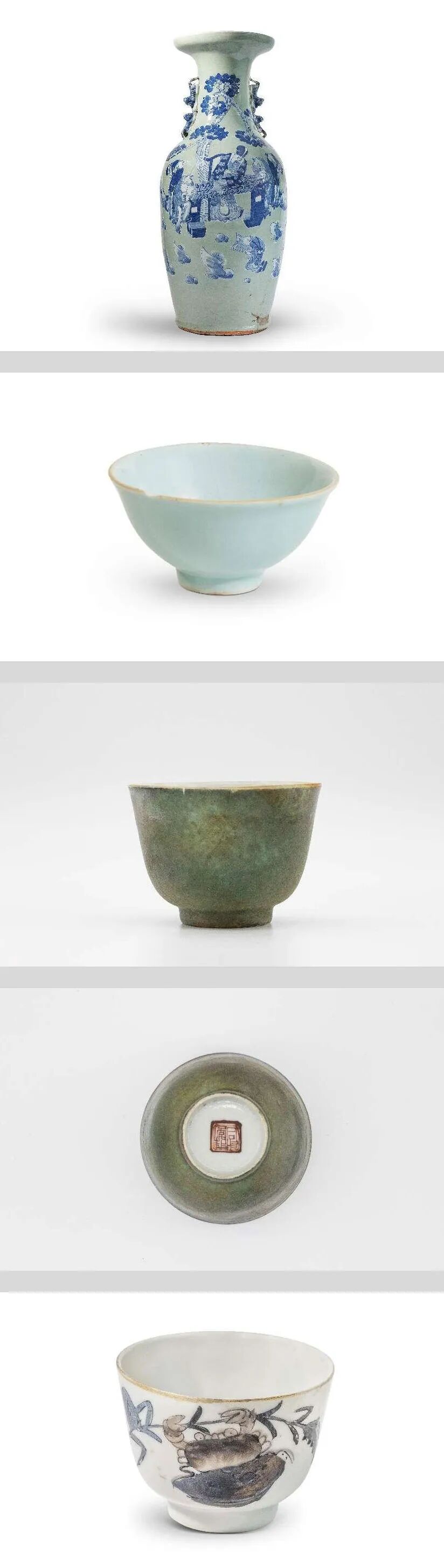 此外,目前已经清理的600多件出水陶瓷器大多产自景德镇窑,包括“同治年制”款绿釉杯、粉彩二甲传胪图杯、豆青釉碗等,其中高60厘米的豆青地堆白青花松下高士图双耳瓶中藏了50件制作精良的青花团龙纹杯。其他陶瓷器可能产自江苏宜兴窑和福建地区窑口。