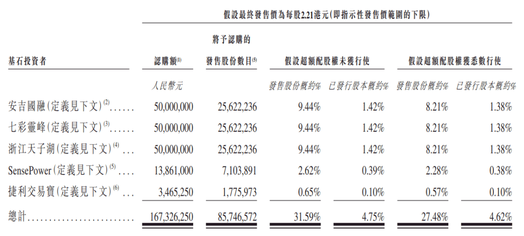 飞天云动此次IPO引入了5名基石投资者,总共认购约1.67亿元人民币的发售股份。其中,安吉国融认购5000万元、七彩灵峰认购5000万元、浙江天子湖认购5000万元,三家安吉单位持股占比超4%。
