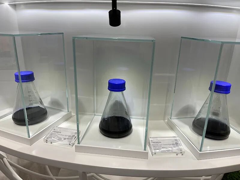 记者近日在现场看到,展台正中央圆柱形玻璃罐中的FBR颗粒硅闪烁着灰黑色光泽,占据了整个展台的焦点位置。
