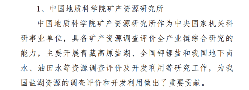 需要指出的是,合作各方在细分领域均有一定优势。资料显示,地科院资源所、具备矿产资源调查评价全产业链综合研究的能力,主要开展青藏高原盐湖、全国钾锂盐和我国地下卤水、油田水等资源调查评价及开发利用等研究工作。
