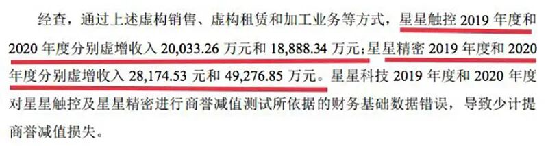 此外,星星精密、星星触控等通过虚构租赁和加工业务,虚增营收;星星触控则通过与供应商约定虚假折扣,虚减营业成本;星星触控、星星精密、江西星星、广东星星等亦通过虚构采购,虚增营业成本。
