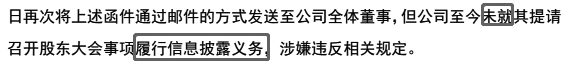 同样引人注意的还有股东提案却拖着不公告的问题,共涉及到两名股东。