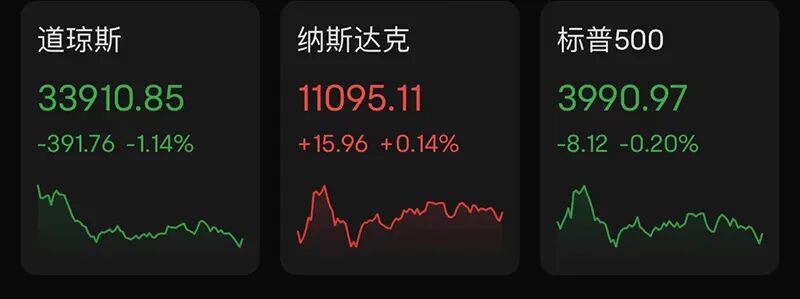 当地时间1月17日,道指受权重股高盛的拖累领跌主要股指,失守34000点整数位,最终收跌391.76点,跌幅1.14%,报33910.85点;标普500指数收跌8.12点,跌幅0.20%,报3990.97点;纳指收涨近16点,涨幅0.14%,报11095.11点。