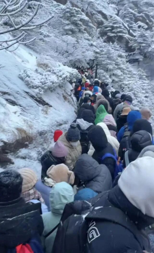 在安徽黄山,官方统计1月24日游客数量创下了5年来春节假期的单日新高。24日,游客反映,黄山风景区下起了雪,当天下午1点从光明顶下山就出现了拥堵的情况,花了6个小时才走到缆车售票点。