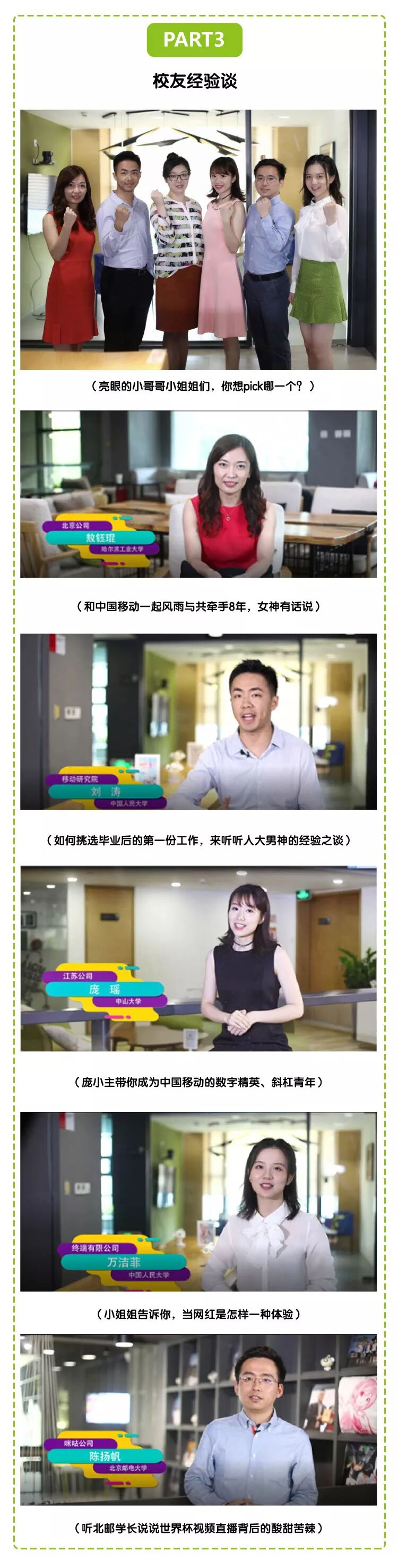 本次招聘涵盖中国移动集团下属31家省公司、20余家专业机构和集团总部,招聘技术类、市场类、职能管理类等各类人才↓↓