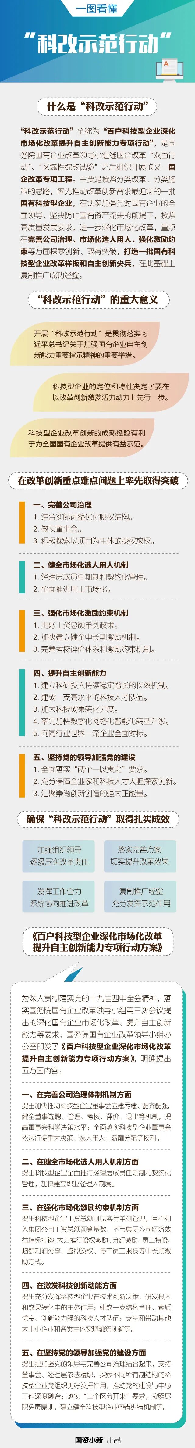 “科改示范行动”是继国企改革“双百行动”、“区域性综改试验”后的又一国企改革专项工程,共选取了200余户改革创新紧迫性较强的国有科技型企业,在切实加强党对国有企业的全面领导、坚决防止国有资产流失的前提下,按照高质量发展要求,进一步推动深化市场化改革,重点在完善公司治理、市场化选人用人、强化激励约束等方面探索创新、取得突破,打造一批国有科技型企业改革样板和自主创新尖兵,在此基础上复制推广成功经验。