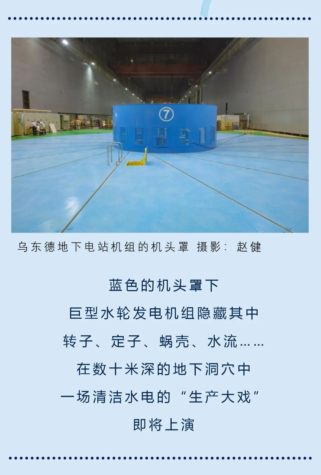 乌东德水电站是国家水电规划金沙江下游四个梯级(乌东德、白鹤滩、溪洛渡和向家坝)中的第一梯级,共安装12台单机容量85万千瓦水轮发电机组,总装机容量1020万千瓦,为中国第四、世界第七大水电站;其多年平均发电量389.1亿千瓦时,相当于昆明市一年的用电量。