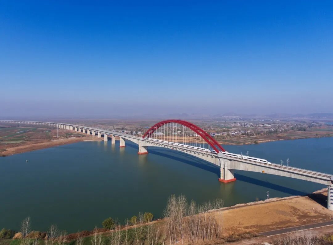 全线桥梁比例达82.6%,线路跨越长江、裕溪河、淮河、颖河分别采用588米、324米、228米、220米的大跨度桥梁。