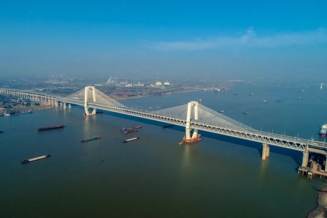由中国中铁大桥院设计、大桥局承建的芜湖长江三桥,是集客运专线、市域轨道交通、城市主干道路于一体的公铁合建桥梁。大桥是世界首座高低矮塔公铁两用斜拉桥,主跨588米,2号主塔高155米,3号主塔高130.5米。相比其他斜拉桥,大桥主塔桥面以上塔高仅为正常塔高的一半。