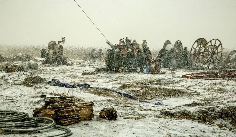 是央企建设者们餐风露宿、艰苦奋战