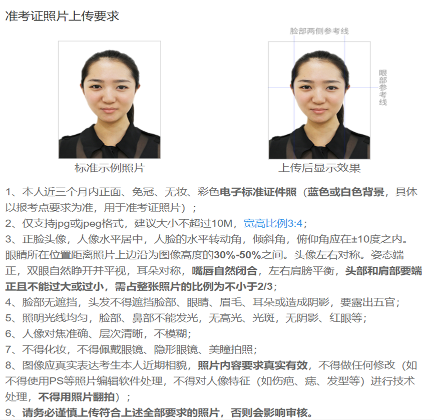 (一)考生本人近三月内正面、免冠、无妆、彩色电子证件照