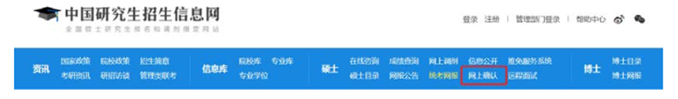 2、登录路径:登录中国研究生招生信息网,点击“网上确认”进行操作。