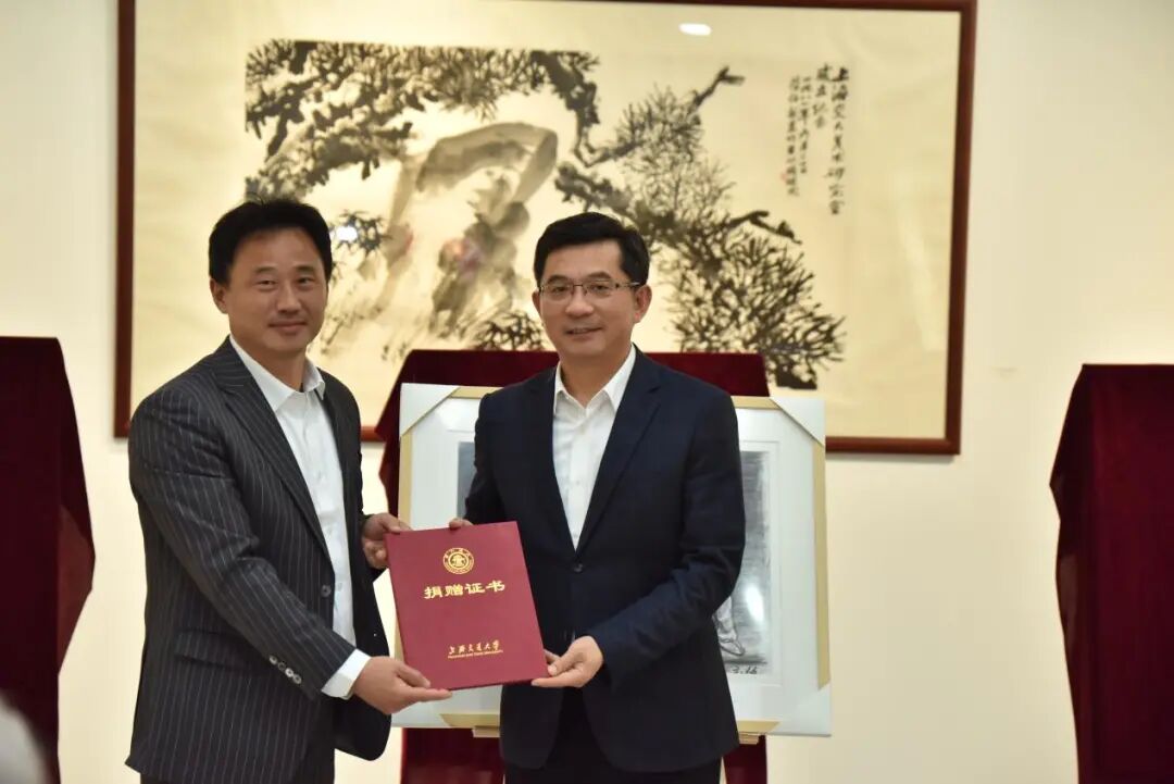设计学院美术教师王宏卫将精心创作的抗疫实录素描组图捐赠给交大,胡昊代表学校接受捐赠并为其颁发捐赠证书。此次捐赠的抗疫实录素描组图共有12幅,全景式记录了交大人齐心协力的抗疫瞬间,不仅展现了设计学院“以艺抗疫”的专业特色,也是对交大抗疫历程的一个特殊记录。