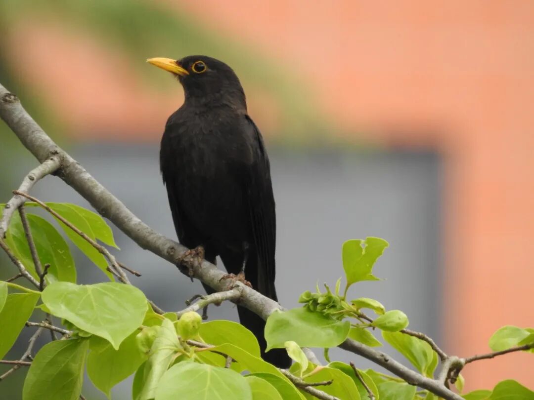 特点:通体黑色,嘴黄色,有黄色眼圈,脚黑色;歌声婉转,受惊时会发出尖叫