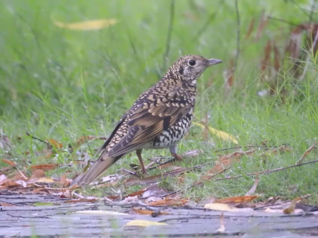 特点:身体粉褐色,颈侧斑点如珍珠,头和鸽子很像;常在地上行走,会发出咕咕咕的叫声