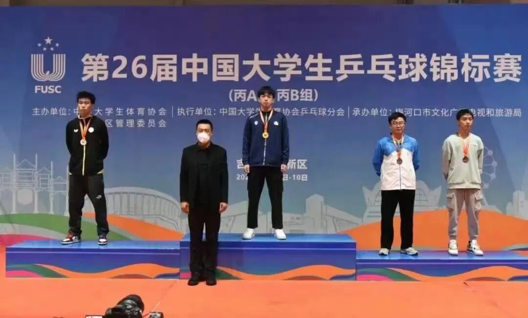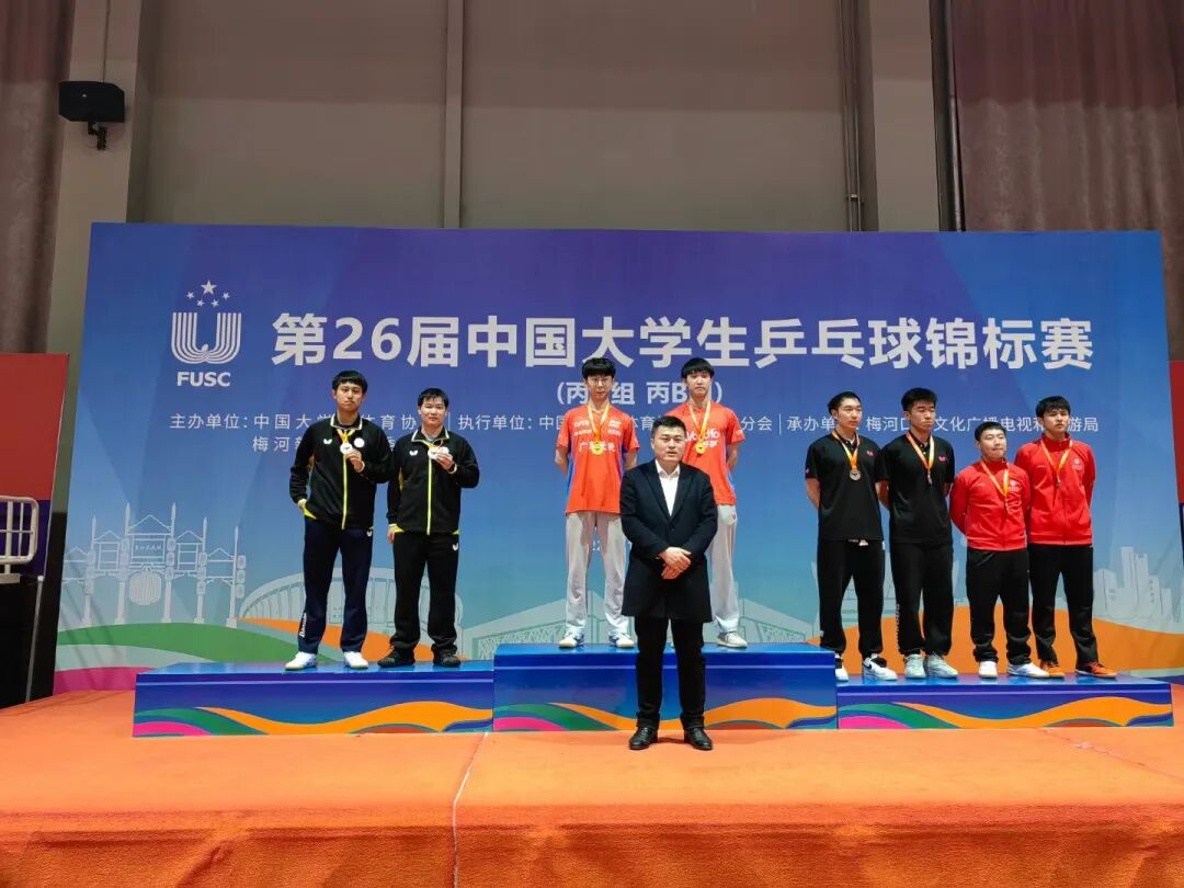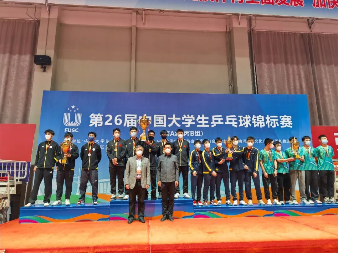 2022年11月10日,第26届中国大学生乒乓球锦标赛(丙A、丙B组)在吉林省梅河新区梅河口市体育中心圆满落幕。本届比赛为期6天,共有来自全国23所高校的300余名选手参赛,本届比赛设有男子团体、女子团体、男子单打、男子双打、女子单打、女子双打、混合双打,两个组别14个项目。11月5日至7日进行各组别团体赛争夺,采用小组循环和淘汰赛制;11月8日至10日,开展各单项比赛角逐,均为单淘汰赛制。我校高水平乒乓球队最终获得2金5银2铜的优异成绩,同时,球队获得体育道德风尚奖,教练员丁松获得教练员体育道德风尚奖。