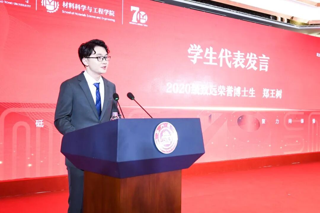 桃李芬芳,薪火相传。博士生郑王树代表材料学子向学院表达了最诚挚的祝福。在材料学子的求学岁月里,流淌的是70年代代相传的延绵学脉,永驻的是一代又一代材料人的无悔青春。