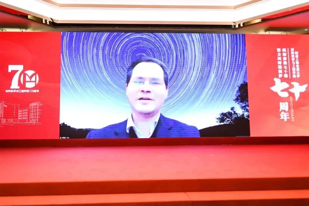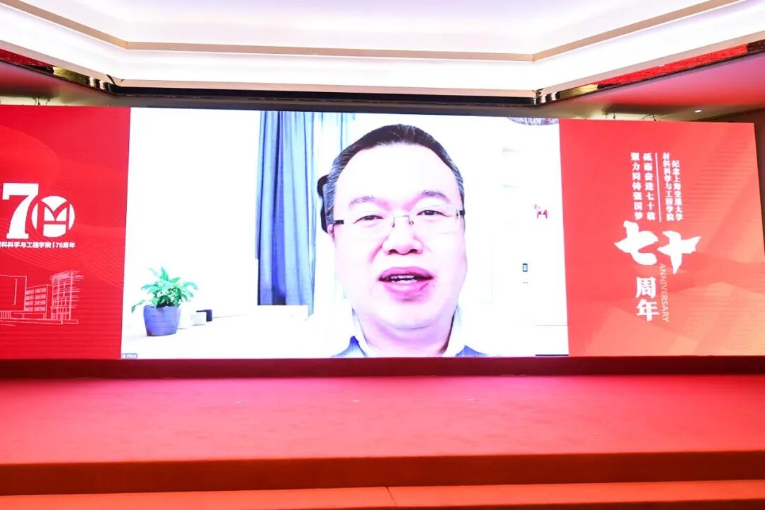科技部高新司材料处任家荣处长在线向材料学院全体师生和广大校友致以热烈的祝贺。他肯定了学院七十年来研制的一大批高质量科技成果,希望上海交大材料学院能为打赢国家材料领域关键核心技术攻坚战和实现高水平科技自立自强做出新的更大贡献。