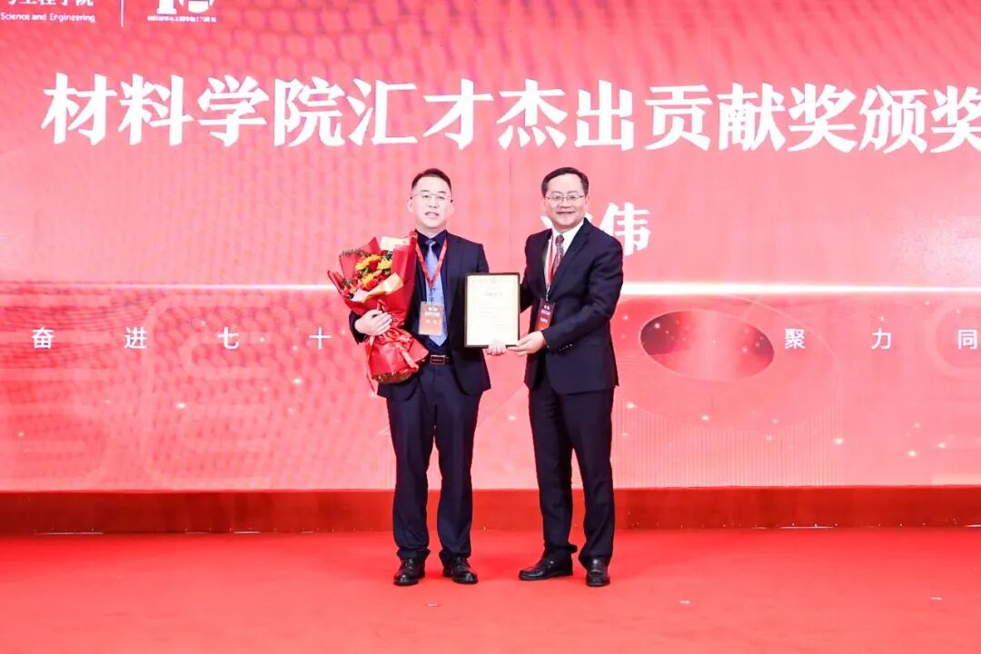 三尺讲坛辛勤耕耘,呕心沥血教育新人。丁文江作为学院教师代表致辞。他指出,材料学院之所以能历经七十载,是因为始终秉持着“求真务实”的基因,同时也离不开全体专家、师生、各届校友等的支持。他表示,未来材料学院教师们将继续不负众望、自加压力、努力前行,争取获得更多的辉煌。