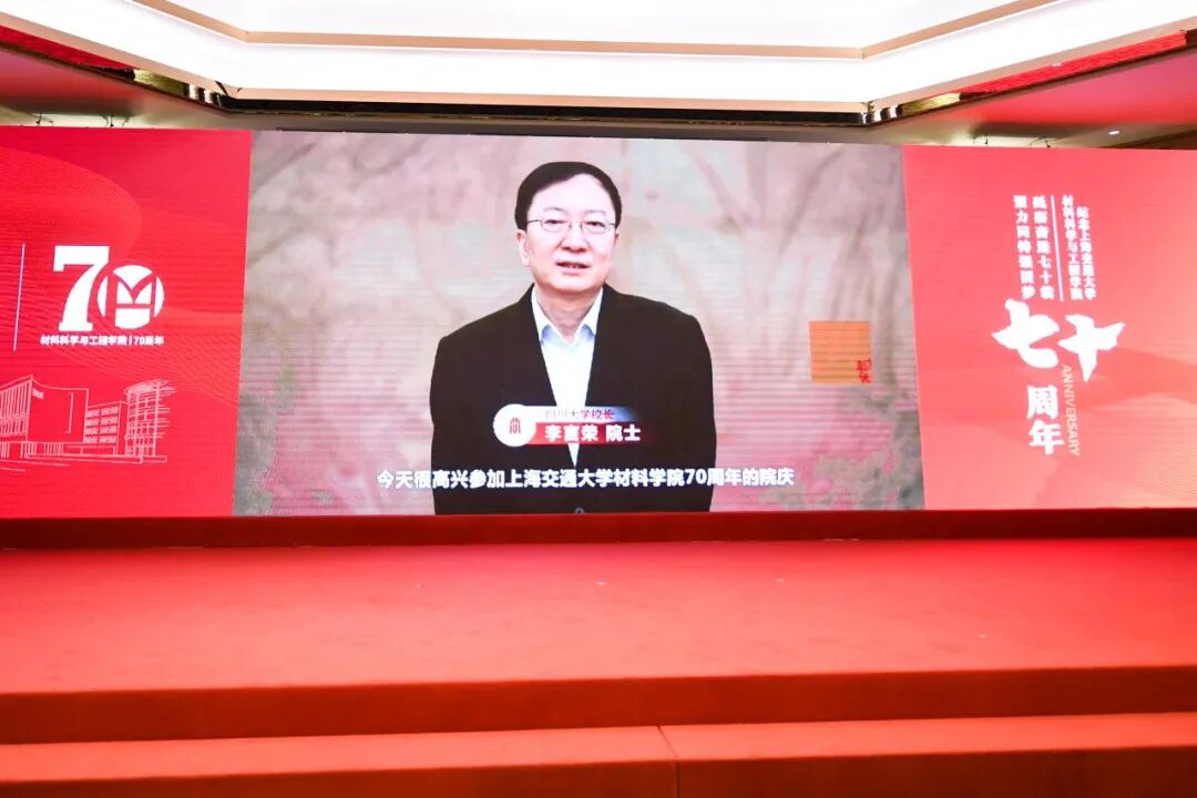 四川大学校长李言荣院士通过视频送上祝福,他表示,作为在教育战线与交大材料学院长期并肩奋斗的兄弟高校,未来双方应继续加强合作,踔厉奋发,勇毅前行,为加快建设中国特色、世界一流的大学和优势学科贡献坚实力量。