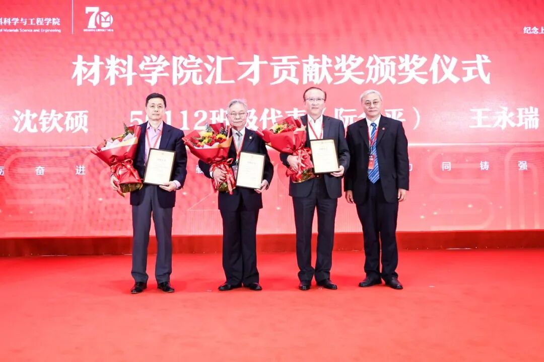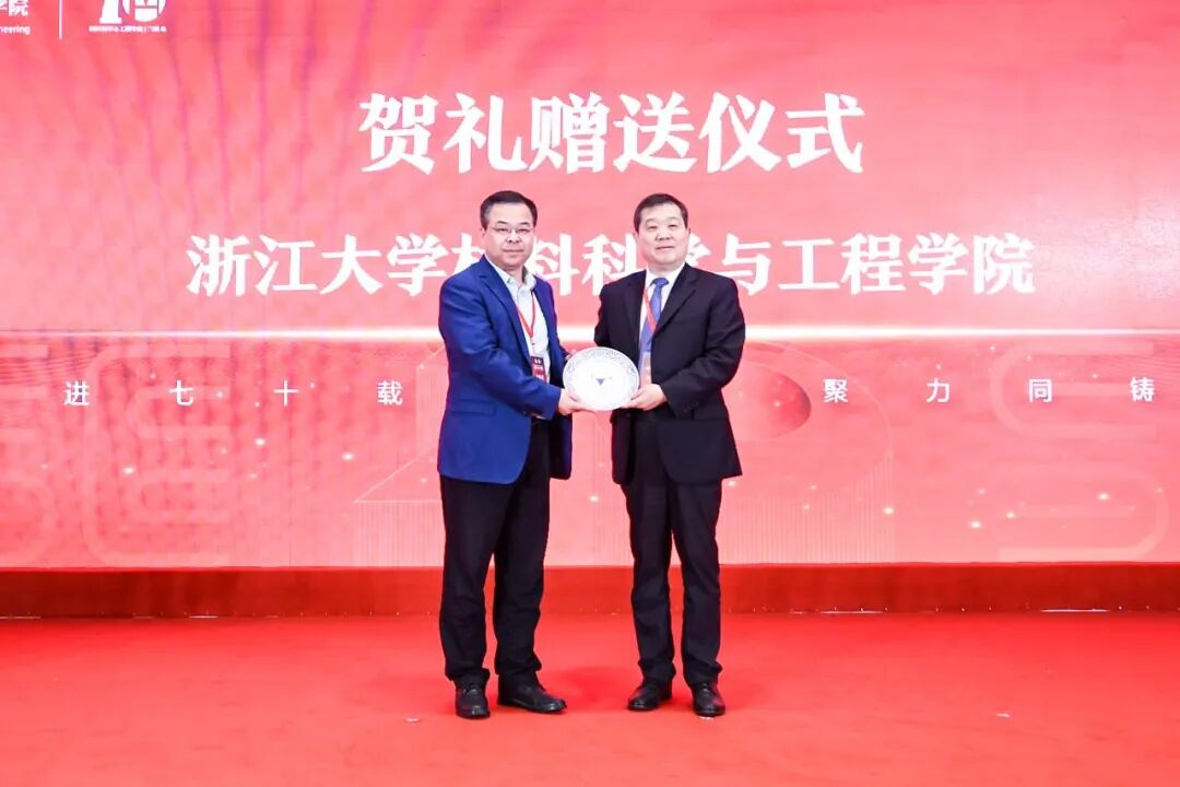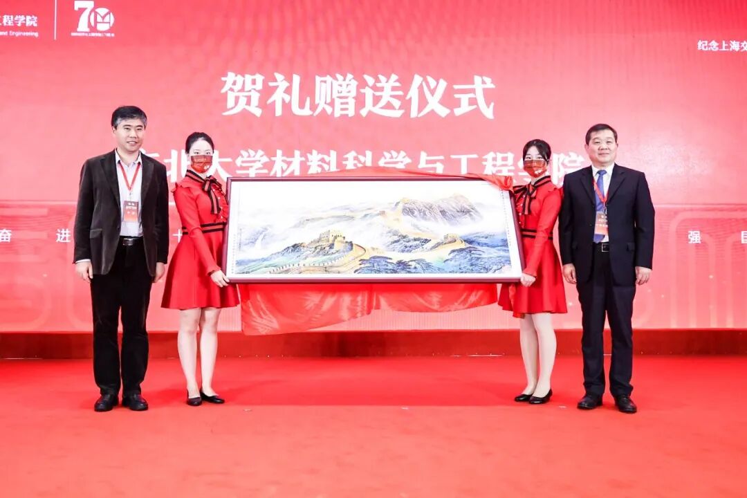 中国材料研究学会、浙江大学材料学院、西安交通大学材料学院、西北工业大学物理学院、东北大学材料学院、合肥工业大学材料学院、内蒙古科技大学材料学院、上海交大生医工学院等兄弟高校和单位的贺信及贺礼,对建院70周年表示热烈祝贺和诚挚祝福。大会举行了贺礼赠送仪式。
