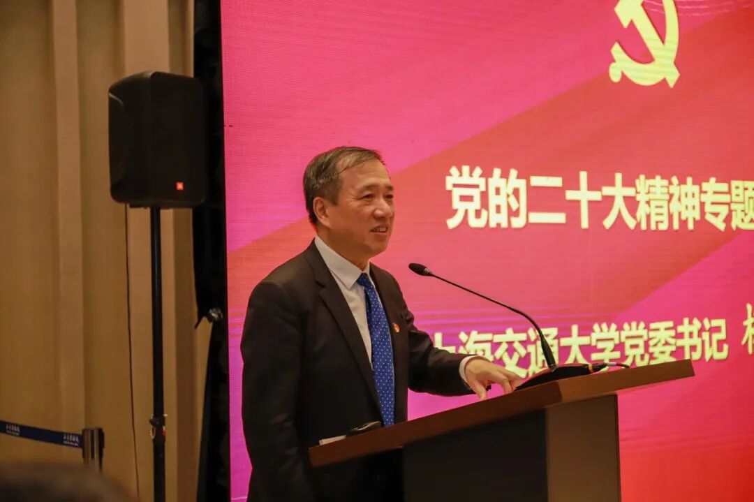 杨振斌作党的二十大精神专题宣讲报告。他分享了自己作为二十大代表的参会感受,联系历史和实际,从大会主题和“三个务必”、过去五年的发展成就和新时代十年的伟大变革、开辟马克思主义中国化时代化新境界,以及五个“必由之路”等方面,对党的二十大报告进行了解读。同时结合高校办学实际,对报告中关于发展科技、人才、教育以及社会主义先进文化等方面的内容进行了重点阐述,与在场同志一起深入学习党的二十大报告。